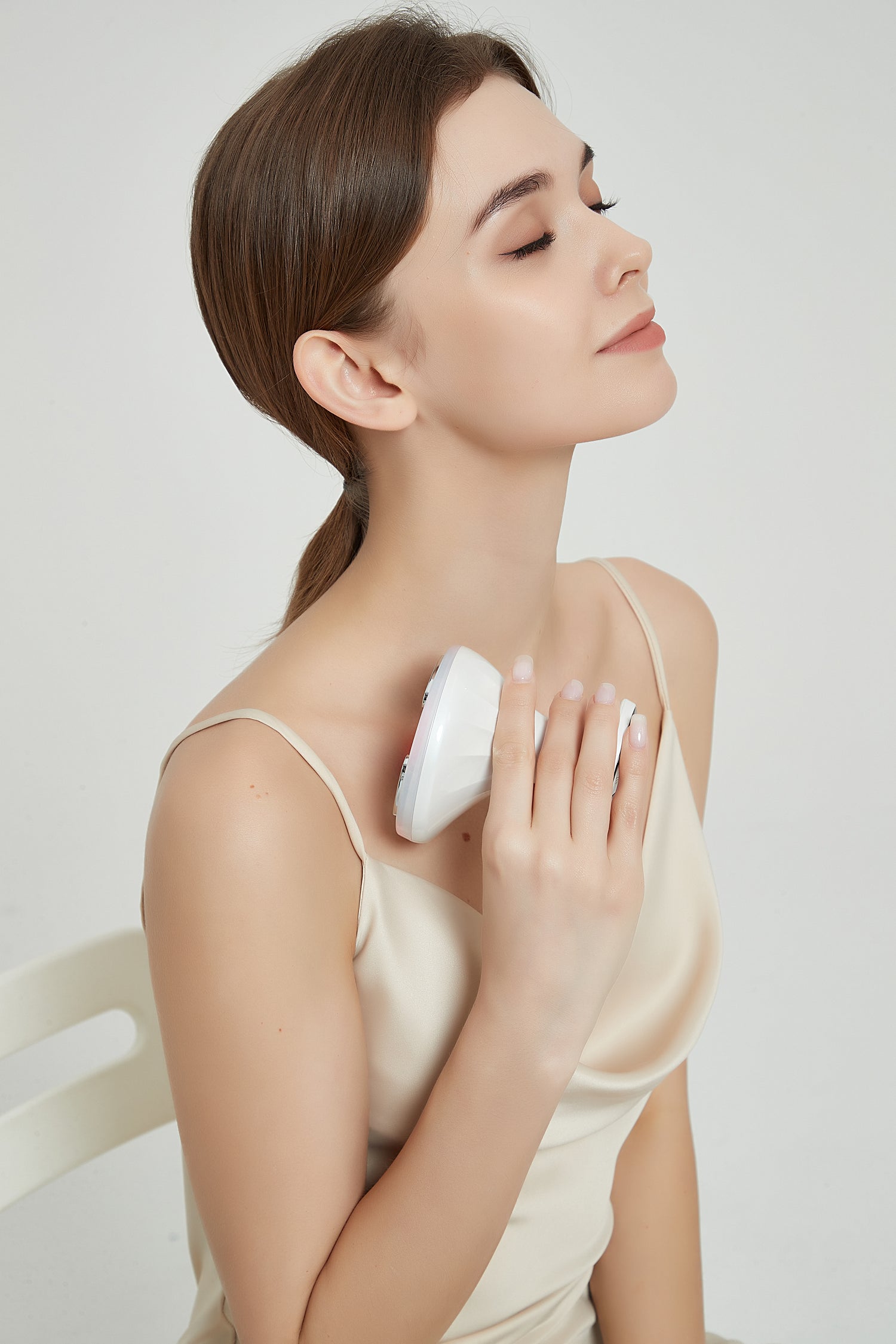 A 4-in-1 handheld device targets cellulite, stretch marks, and skin tightening. With adjustable intensity levels and 3 modes, it offers customizable treatment for areas like the waist, thighs, and face, providing a rejuvenated appearance.